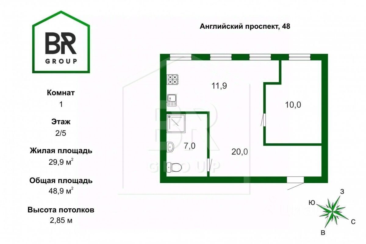 Эксклюзив! Современный дом в окружении дореволюционных зданий — 2е -квартира 48,9 м², Английский проспект, д. 48.