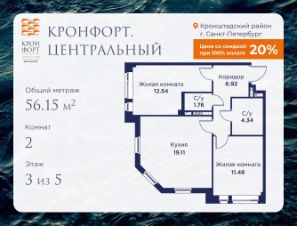 Предлагается квартира площадью 56.15 кв.м в жилом комплексе "Кронфорт. Центральный" в Санкт-Петербурге (Кронштадт). Возможна покупка с использованием льготных и специальных ипотечных программ с государственной поддержкой.