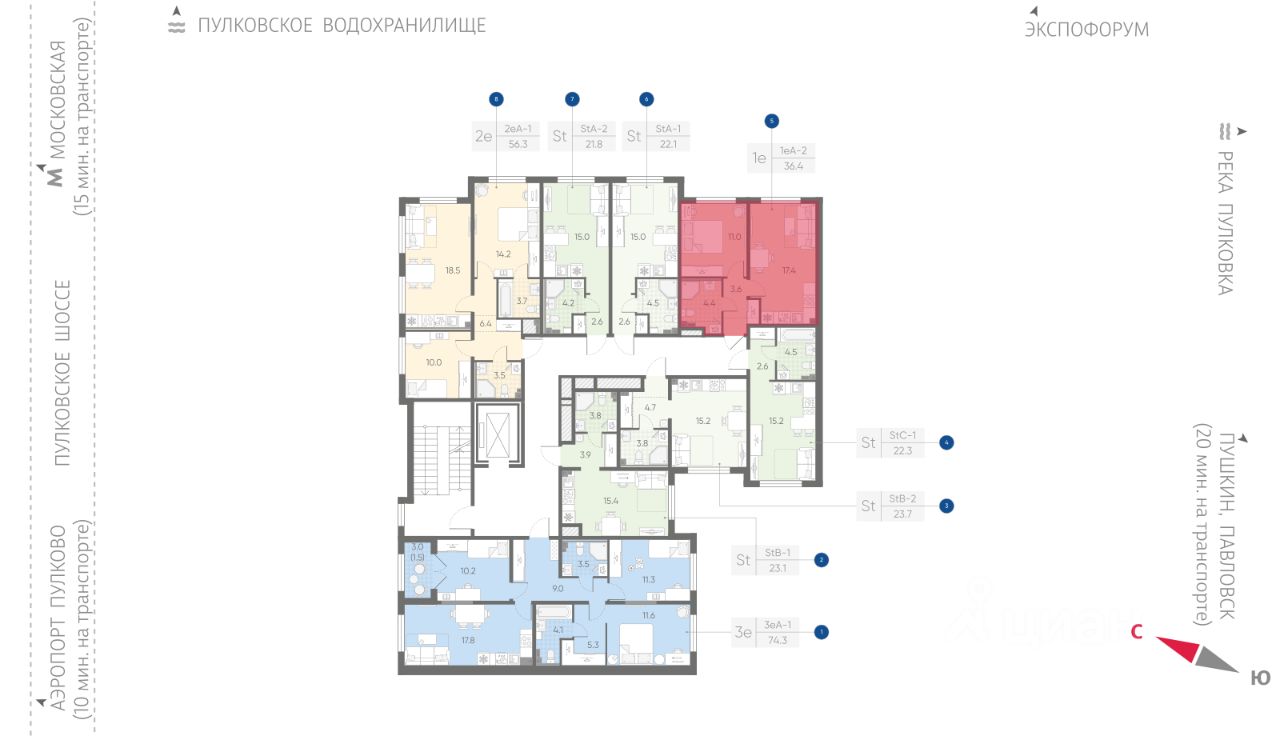 Дома высотой всего 4 этажа, квартиры от уютных студий до трехкомнатных квартир для большой семьи. Широчайший выбор планировок, включая квартиры с мастер-спальнями, патио, каминами, саунами, двухуровневые квартиры. Школа, детские сады, парк на берегу озера и выезды на Пулковское и Петербургское шоссе.