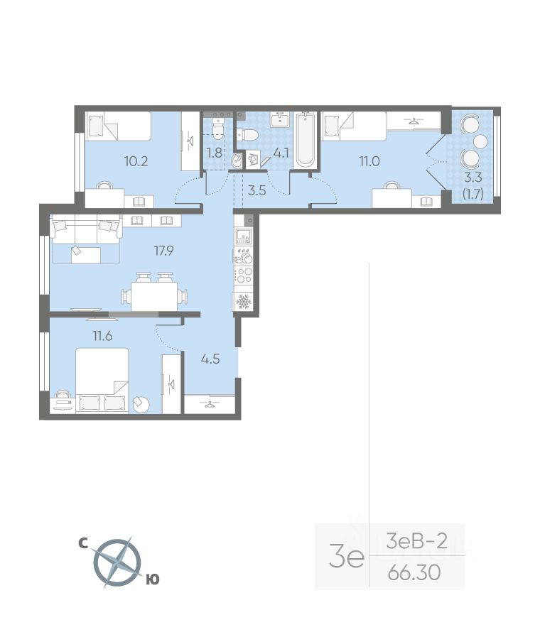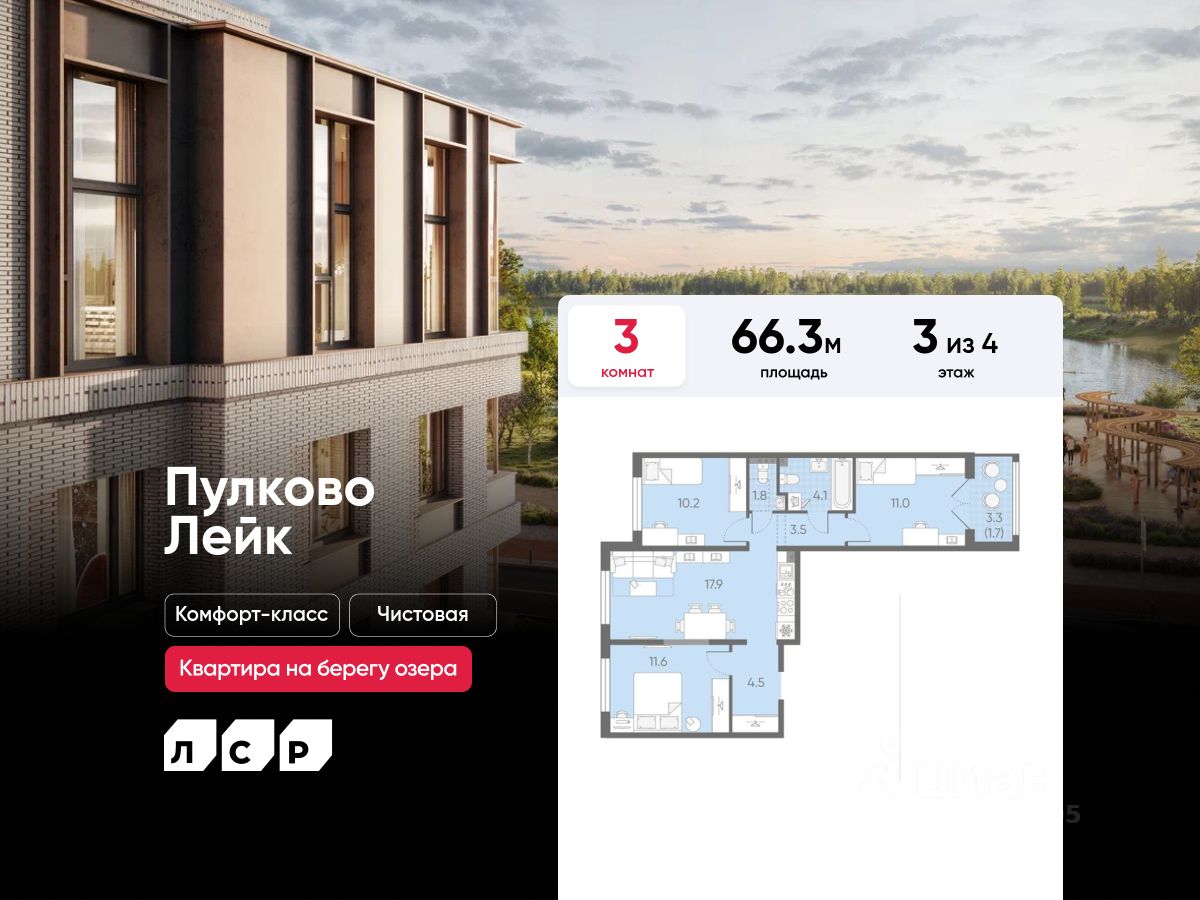 Продается 3-комнатная квартира в ЖК "Пулково Лейк" на 3 этаже. Общая площадь составляет 66.30 кв. м. Квартира с чистовой отделкой. Жилой комплекс "Пулково Лейк" располагается по адресу Санкт-Петербург, Московский.