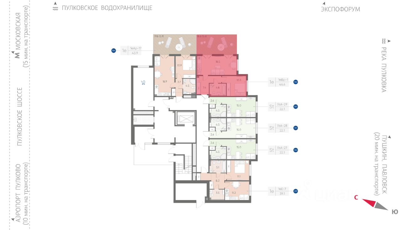 • Удобное расположение в Московском районе. Аэропорт "Пулково", Экспофорум, царские пригороды Петербурга и выезд на КАД - от 7 до 20 минут на авто.