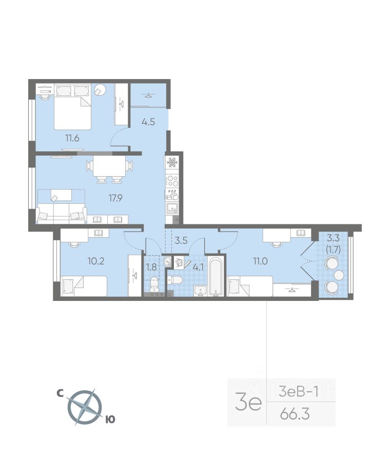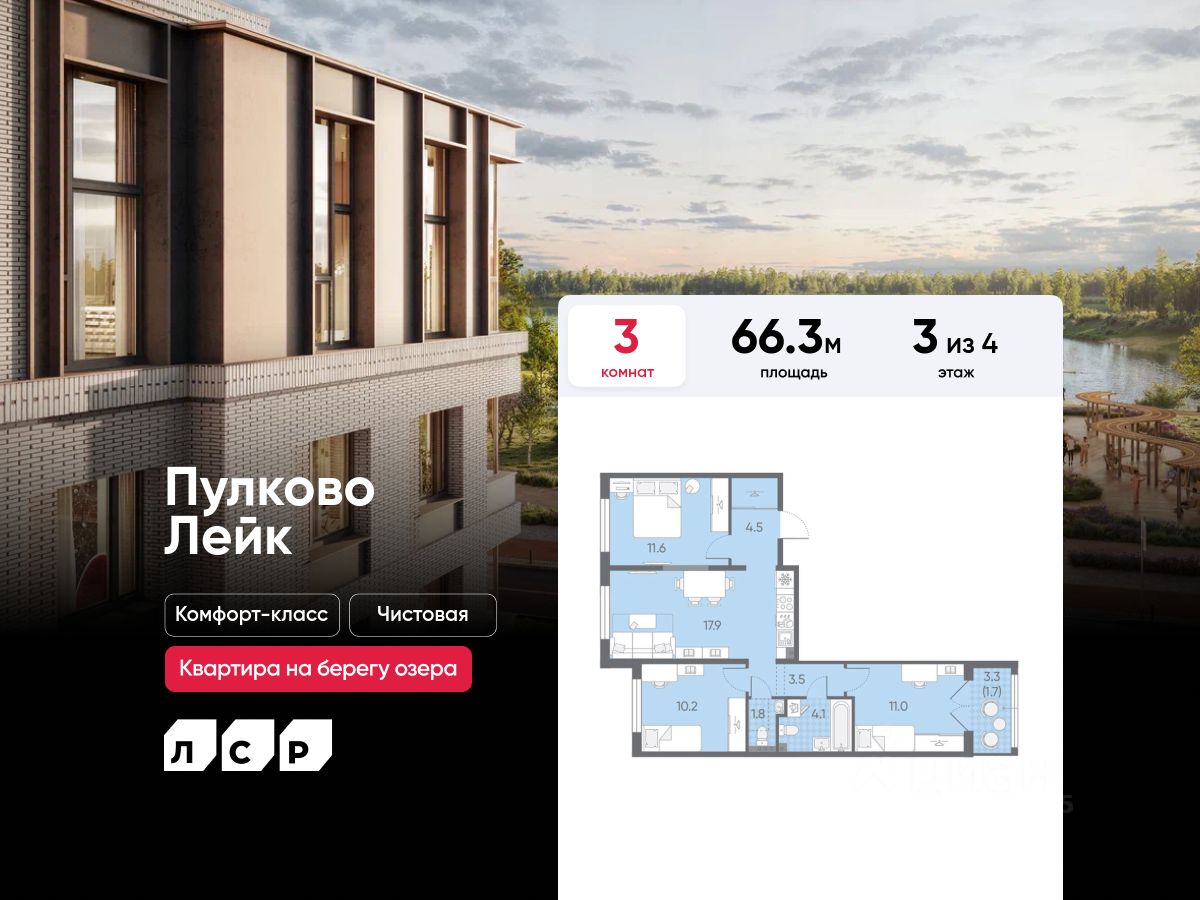 Продается 3-комнатная квартира в ЖК "Пулково Лейк" на 3 этаже. Общая площадь составляет 66.30 кв. м. Квартира с чистовой отделкой. Жилой комплекс "Пулково Лейк" располагается по адресу Санкт-Петербург, Московский.