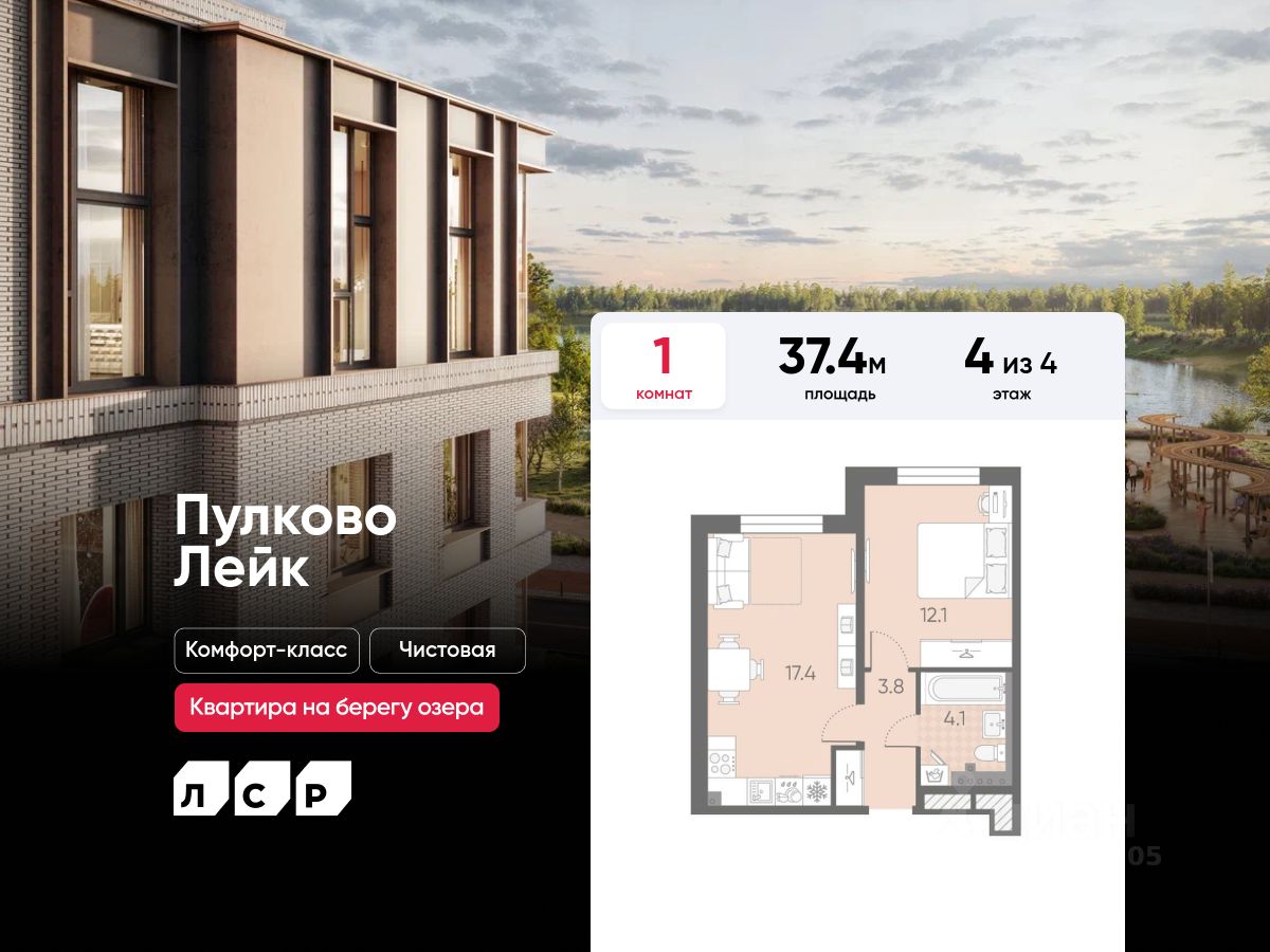 Продается 1-комнатная квартира в ЖК "Пулково Лейк" на 4 этаже. Общая площадь составляет 37.40 кв. м. Квартира с чистовой отделкой. Жилой комплекс "Пулково Лейк" располагается по адресу Санкт-Петербург, Московский.