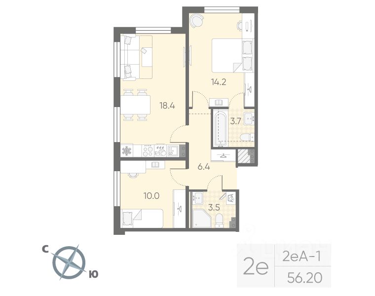 Продается 2-комнатная квартира в ЖК "Пулково Лейк" на 2 этаже. Общая площадь составляет 56.20 кв. м. Квартира с чистовой отделкой. Жилой комплекс "Пулково Лейк" располагается по адресу Санкт-Петербург, Московский.