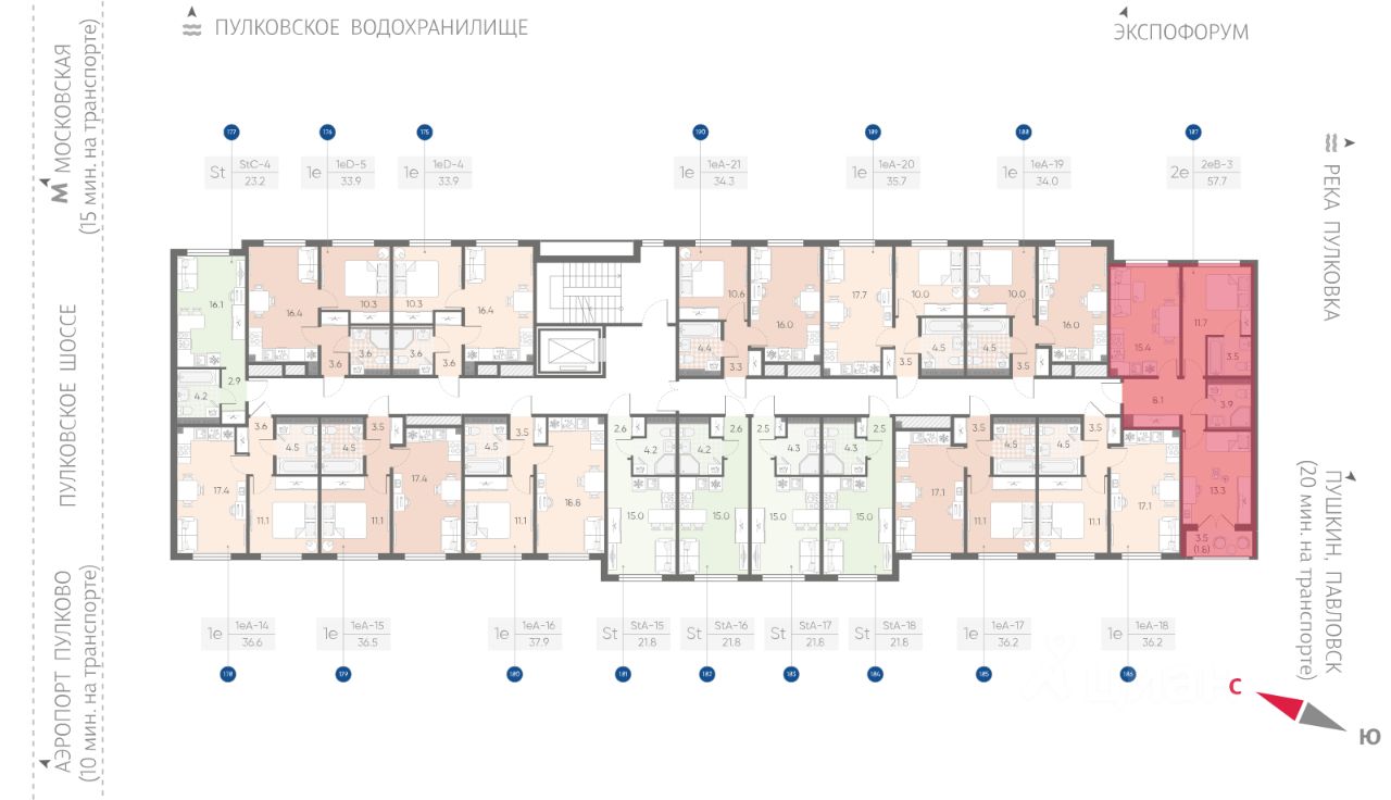 Дома высотой всего 4 этажа, квартиры от уютных студий до трехкомнатных квартир для большой семьи. Широчайший выбор планировок, включая квартиры с мастер-спальнями, патио, каминами, саунами, двухуровневые квартиры. Школа, детские сады, парк на берегу озера и выезды на Пулковское и Петербургское шоссе.