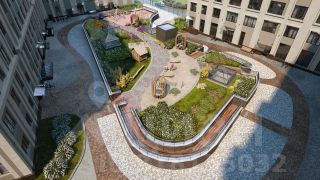 Внутренняя территория комплекса полностью пешеходная, уютное пространство для отдыха детей и взрослых - большое внимание уделено ландшафтному дизайну, проработке пеших маршрутов, оформлению тематических зон. Местом прогулок жителей комплекса станет благоустроенная набережная, исполненная по уникальному проекту с озеленением и устройством малых архитектурных форм. Дизайн дворов предполагает создание искусственных холмов, высадку кустарников, цветников, крупномерных деревьев.