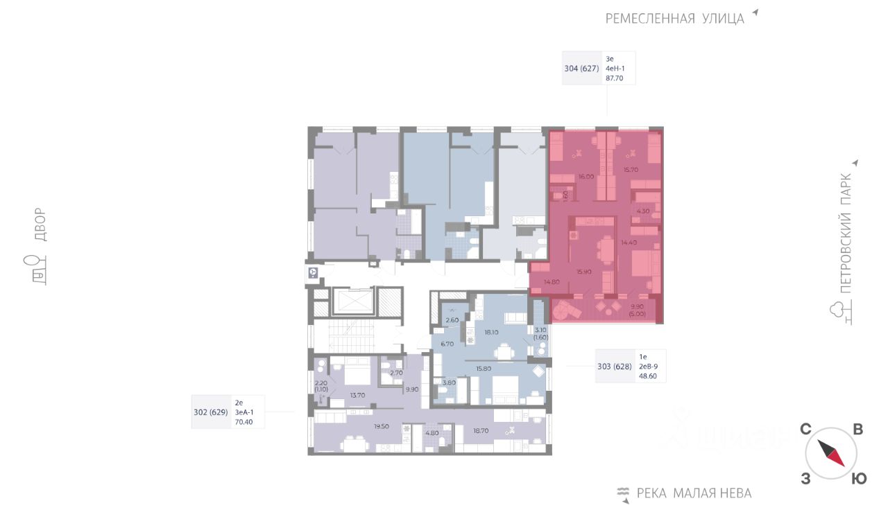 Продаётся 3-комнатная квартира в ЖК "Нева Резиденс" на 6 этаже. Общая площадь составляет 87.70 кв. м. Квартира без отделки. Особенность планировки - террасы, обращенные в сторону Невы и парка, откуда отлично видны главные архитектурные символы Петербурга. Жилой комплекс "Нева Резиденс" располагается по адресу Санкт-Петербург, Петроградский.