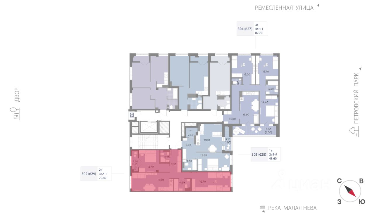 Продаётся 2-комнатная квартира в ЖК "Нева Резиденс" на 6 этаже. Общая площадь составляет 70.40 кв. м. Квартира без отделки. Жилой комплекс "Нева Резиденс" располагается по адресу Санкт-Петербург, Петроградский.