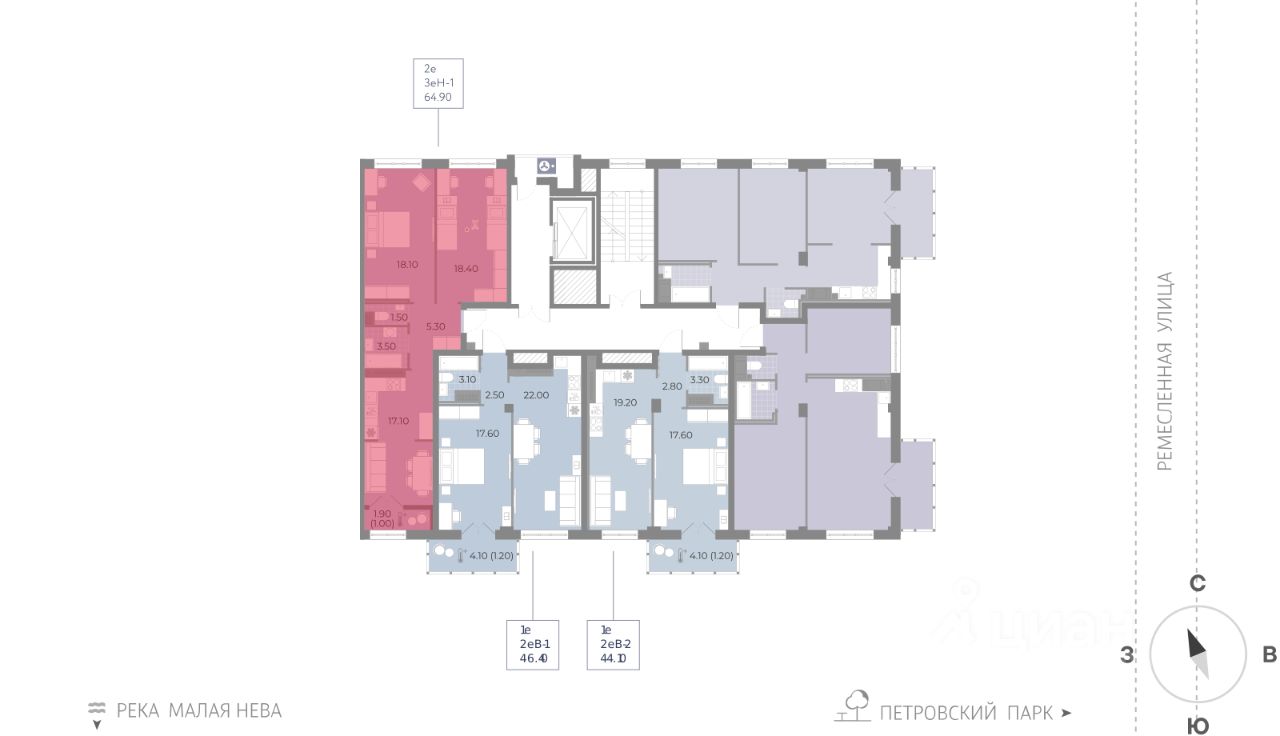 Рядом расположился живописный Петровский парк с прудом. В нескольких минутах езды Петроградская сторона и исторический центр, через мост - Крестовский остров с огромной парковой зоной и аттракционами. Из подземного паркинга на лифте можно подняться на нужный этаж прямо к дверям квартиры.