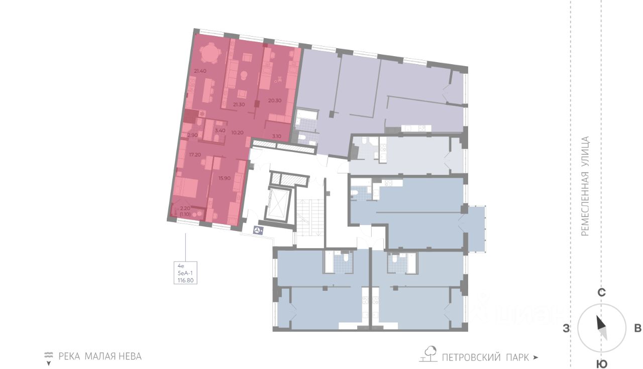 Продаётся 4-комнатная квартира в ЖК "Нева Резиденс" на 5 этаже. Общая площадь составляет 116.80 кв. м. Квартира без отделки. Жилой комплекс "Нева Резиденс" располагается по адресу Санкт-Петербург, Петроградский.
