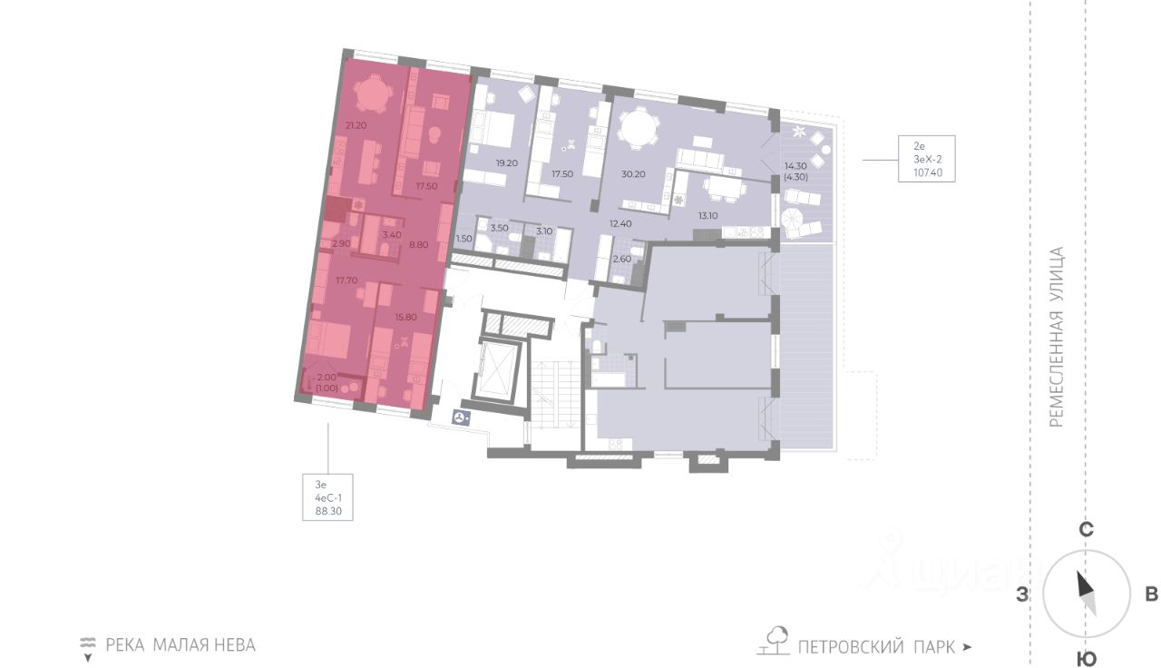 Продаётся 3-комнатная квартира в ЖК "Нева Резиденс" на 7 этаже. Общая площадь составляет 88.30 кв. м. Квартира без отделки. Жилой комплекс "Нева Резиденс" располагается по адресу Санкт-Петербург, Петроградский.