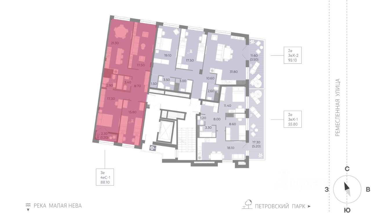 Рядом расположился живописный Петровский парк с прудом. В нескольких минутах езды Петроградская сторона и исторический центр, через мост - Крестовский остров с огромной парковой зоной и аттракционами. Из подземного паркинга на лифте можно подняться на нужный этаж прямо к дверям квартиры.