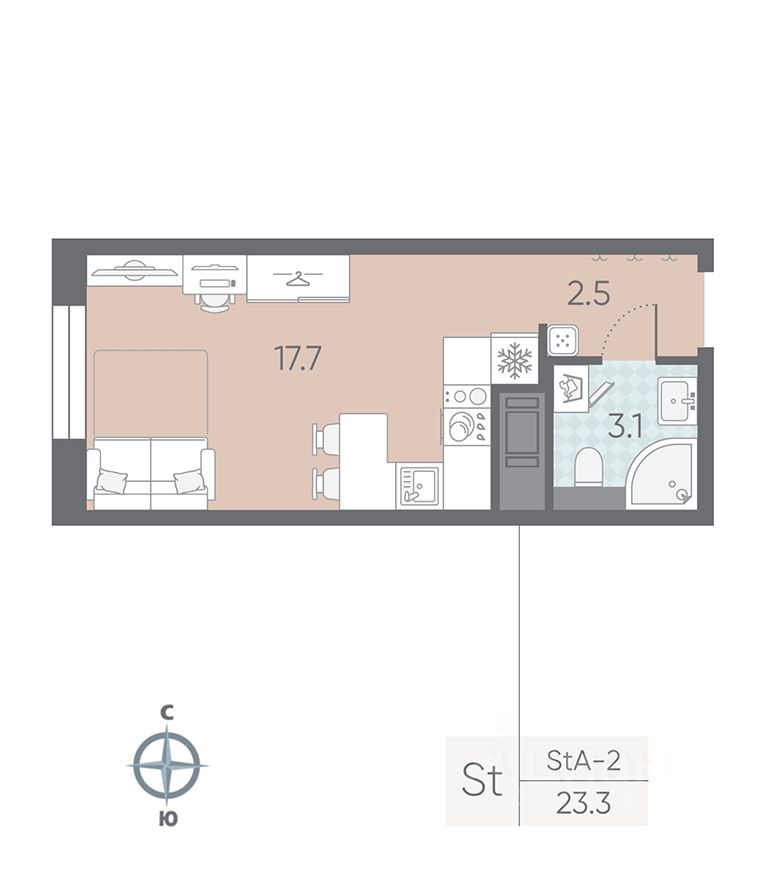 Продаётся студия в ЖК "Большая Охта" на 7 этаже. Общая площадь составляет 23.30 кв. м. Квартира с white box отделкой. Жилой комплекс "Большая Охта" располагается по адресу Санкт-Петербург, Красногвардейский.