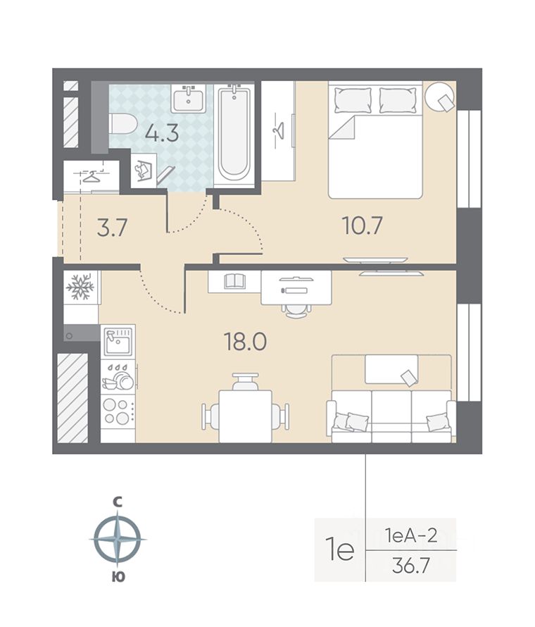 Общая площадь36,7 м²