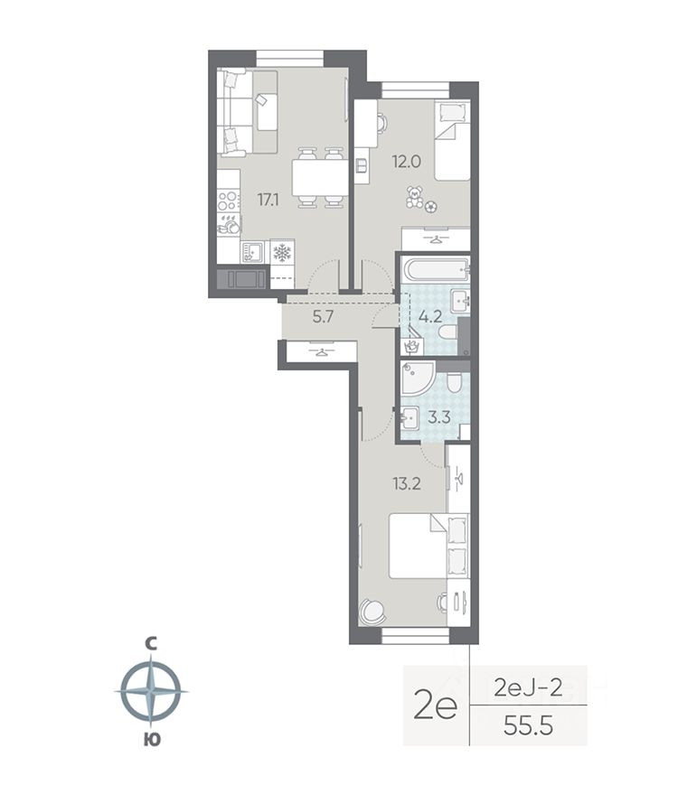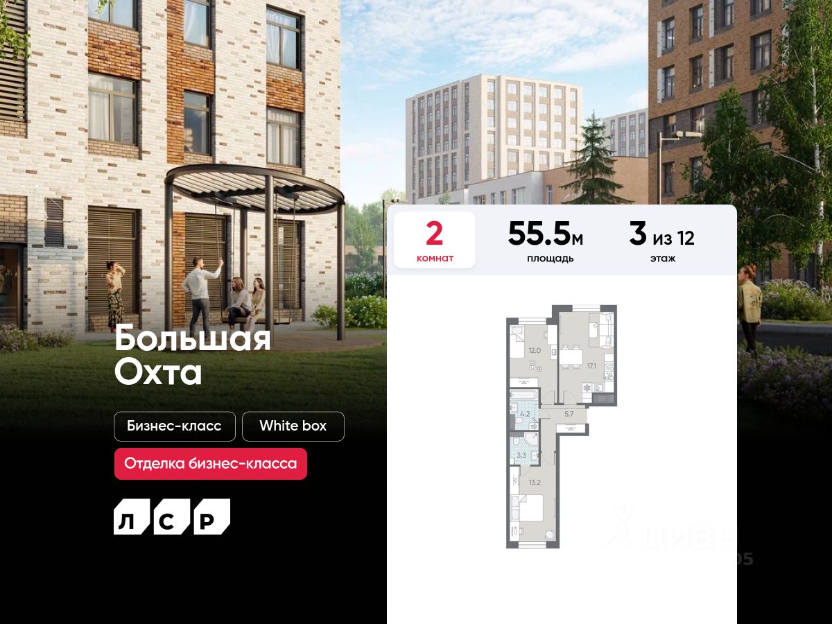 Продаётся 2-комнатная квартира в ЖК "Большая Охта" на 3 этаже. Общая площадь составляет 55.50 кв. м. Квартира с white box отделкой. Жилой комплекс "Большая Охта" располагается по адресу Санкт-Петербург, Красногвардейский.