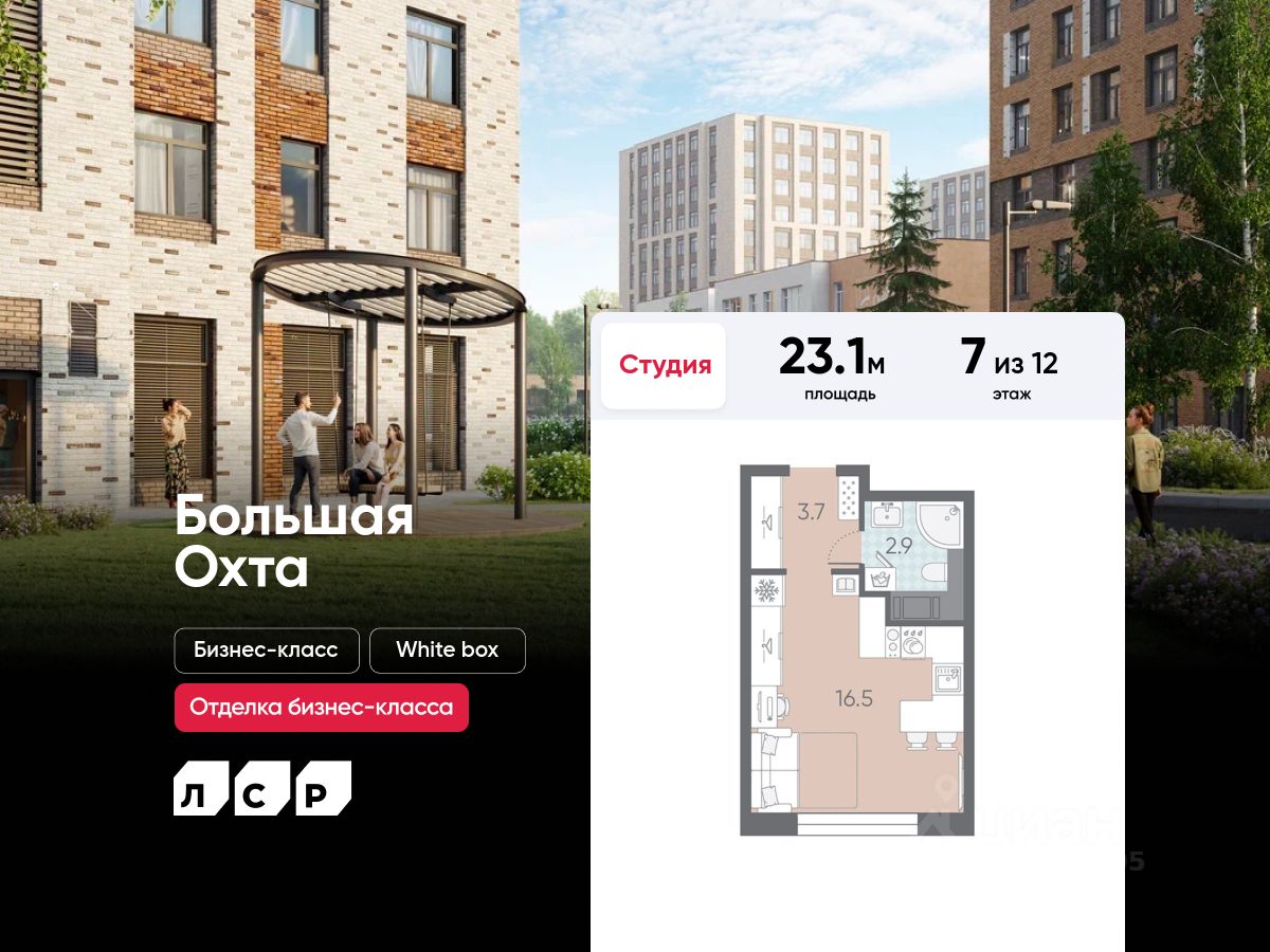 Продаётся студия в ЖК "Большая Охта" на 7 этаже. Общая площадь составляет 23.10 кв. м. Квартира с white box отделкой. Жилой комплекс "Большая Охта" располагается по адресу Санкт-Петербург, Красногвардейский.