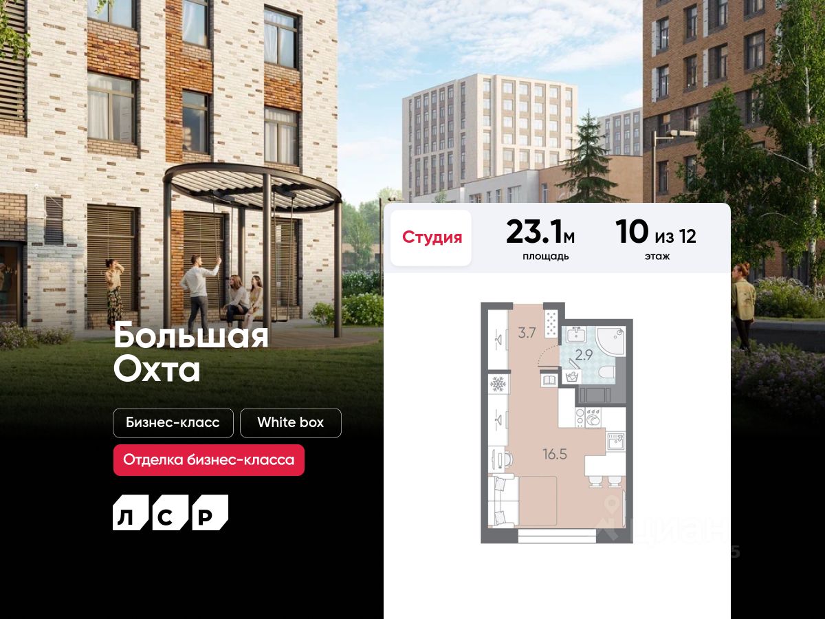 Продаётся студия в ЖК "Большая Охта" на 10 этаже. Общая площадь составляет 23.10 кв. м. Квартира с white box отделкой. Жилой комплекс "Большая Охта" располагается по адресу Санкт-Петербург, Красногвардейский. "ЛСР. Большая Охта" - проект бизнес-класса, в Красногвардейском районе между Якорной и Партизанской улицами, рядом с центром Петербурга. Престижный комплекс с удобной пешеходной и транспортной доступностью. Особенности квартиры высокие потолки и увеличенные окна. Горизонтальная разводка труб водоснабжения и отопления и вынесенные в холлы счетчики сохранят эстетичный дизайн комнат. Встроенные клапаны инфильтрации воздуха будут поддерживать чистоту и свежесть воздуха. Расположение: • 8 мин на авто до станции метро "Новочеркасская"; • 10 мин на авто до станции метро "Ладожская"; • 10 мин на авто до Таврического сада и исторического центра города; • 13 мин на авто до станции метро "Чернышевская"; • 25 мин на авто до КАД. Пространство внутри комплекса разделено на функциональные зоны: тематические, спортивные, уединенные. Все площадки окружают взрослые хвойные и лиственные деревья, подобранные с учетом роста, эстетики и сезонного цветения. Расширенная инфраструктура комплекса продумана до мелочей. Внутри квартала есть все необходимое для жизни с комфортом и удовольствием - детские сады и школы, магазины, площадки для спорта и отдыха, фитнес-залы, модные кофейни и общественные летние веранды. Преимущества: • Подземный паркинг и кладовые помещения; • Двор без машин; • Система "Умный дом" (в т.ч. управление домофоном со смартфона); • Пост охраны и консьерж; • Индивидуальный тепловой пункт; • Колясочные в каждой парадной; • Зарядка для электромобилей. Успейте приобрести квартиру на выгодных условиях! Чтобы узнать подробности, обращайтесь за консультацией по телефону.
