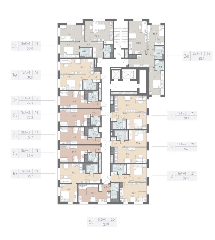Горизонтальная разводка труб водоснабжения и отопления и вынесенные в холлы счетчики сохранят эстетичный дизайн комнат. Встроенные клапаны инфильтрации воздуха будут поддерживать чистоту и свежесть воздуха.