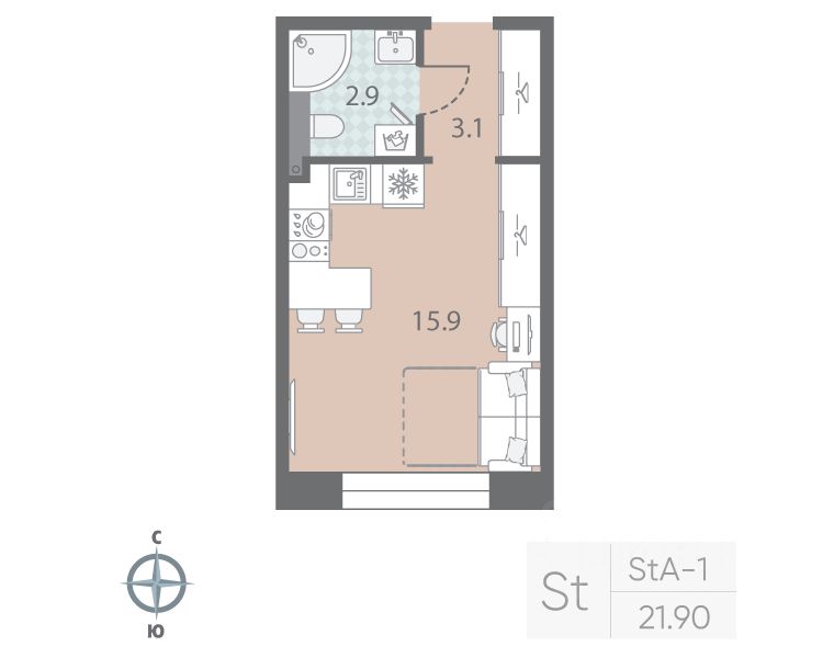 Продаётся студия в ЖК "Большая Охта" на 2 этаже. Общая площадь составляет 21.90 кв. м. Квартира с white box отделкой. Жилой комплекс "Большая Охта" располагается по адресу Санкт-Петербург, Красногвардейский.
