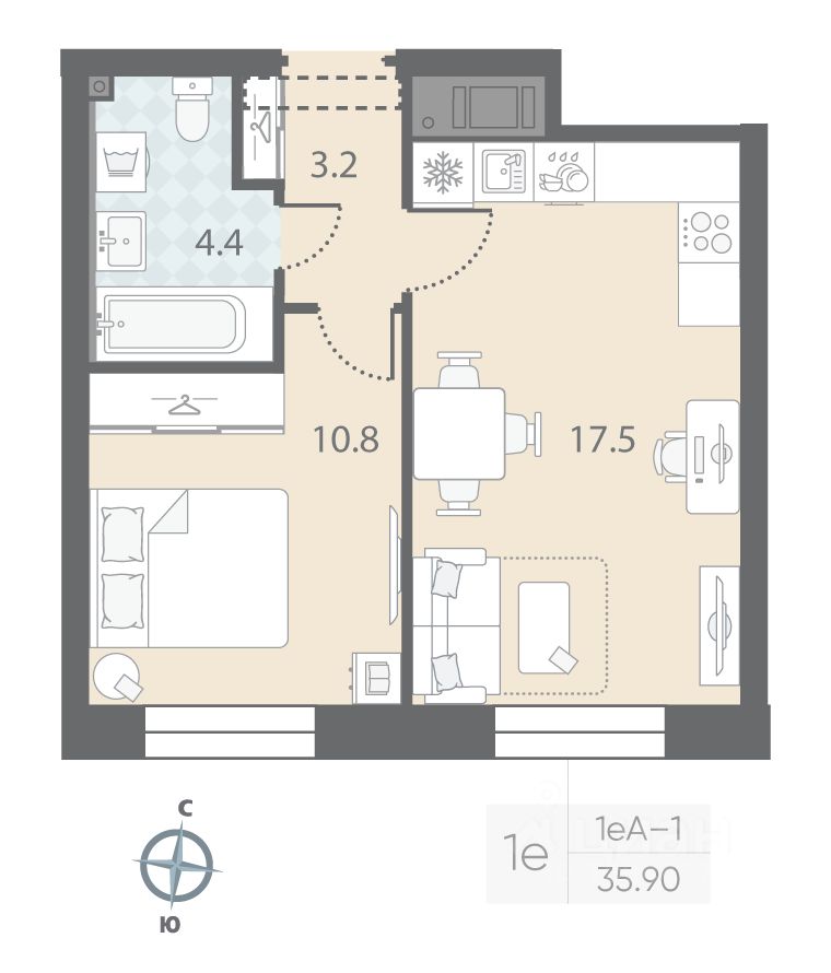 Продаётся 1-комнатная квартира в ЖК "Большая Охта" на 3 этаже. Общая площадь составляет 35.90 кв. м. Квартира с white box отделкой. Жилой комплекс "Большая Охта" располагается по адресу Санкт-Петербург, Красногвардейский.