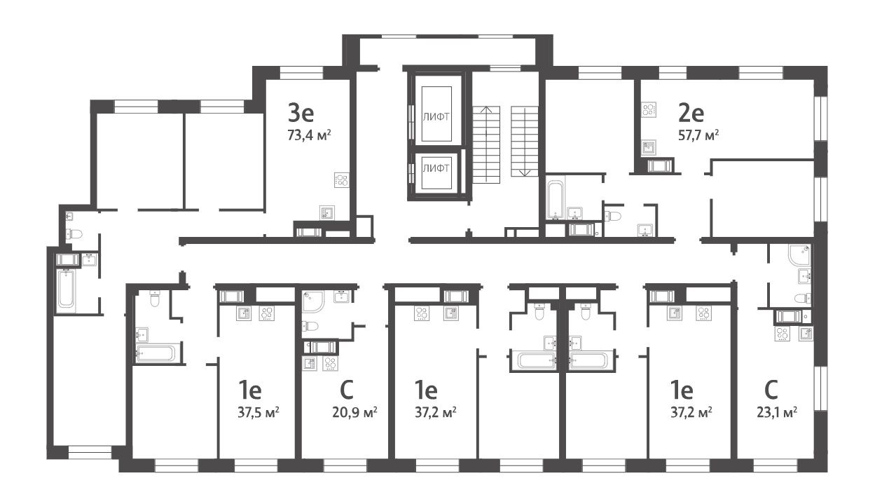Горизонтальная разводка труб водоснабжения и отопления и вынесенные в холлы счетчики сохранят эстетичный дизайн комнат. Встроенные клапаны инфильтрации воздуха будут поддерживать чистоту и свежесть воздуха.
