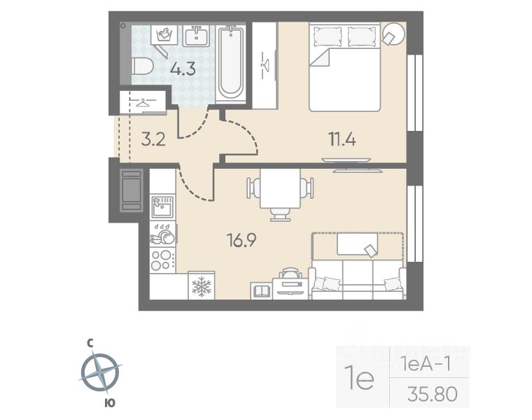 Продаётся 1-комнатная квартира в ЖК "Большая Охта" на 8 этаже. Общая площадь составляет 35.80 кв. м. Квартира с white box отделкой. Жилой комплекс "Большая Охта" располагается по адресу Санкт-Петербург, Красногвардейский.