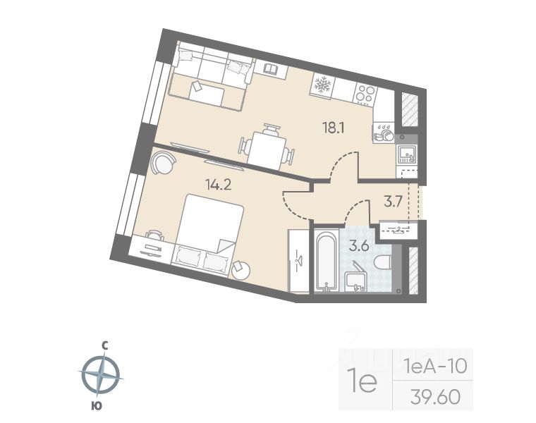 Продаётся 1-комнатная квартира в ЖК "Большая Охта" на 3 этаже. Общая площадь составляет 39.60 кв. м. Квартира с white box отделкой. Жилой комплекс "Большая Охта" располагается по адресу Санкт-Петербург, Красногвардейский.