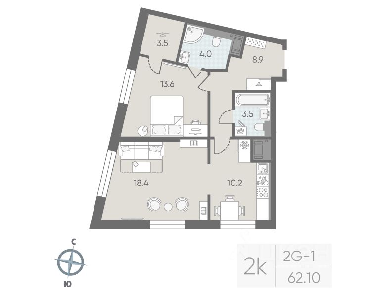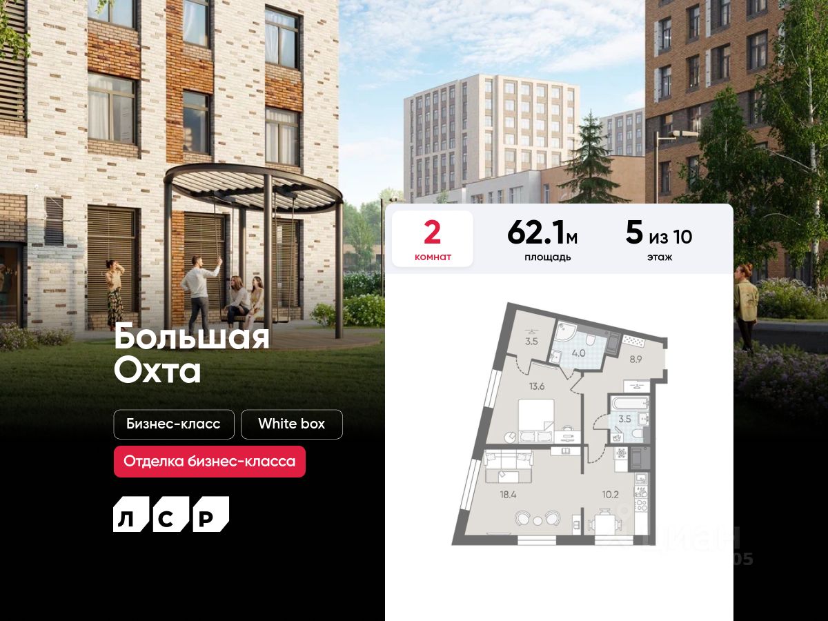 Продаётся 2-комнатная квартира в ЖК "Большая Охта" на 5 этаже. Общая площадь составляет 62.10 кв. м. Квартира с white box отделкой. Жилой комплекс "Большая Охта" располагается по адресу Санкт-Петербург, Красногвардейский.