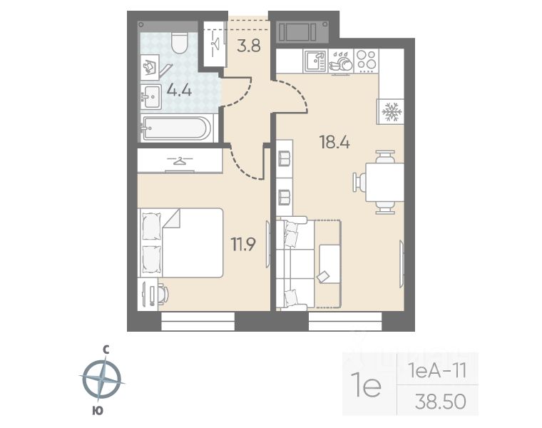 Продаётся 1-комнатная квартира в ЖК "Большая Охта" на 8 этаже. Общая площадь составляет 38.50 кв. м. Квартира с white box отделкой. Жилой комплекс "Большая Охта" располагается по адресу Санкт-Петербург, Красногвардейский.