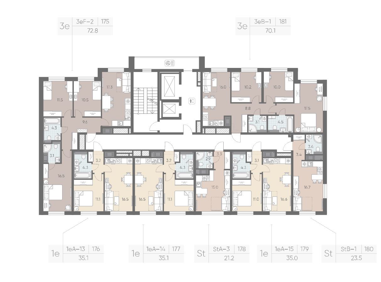 Горизонтальная разводка труб водоснабжения и отопления и вынесенные в холлы счетчики сохранят эстетичный дизайн комнат. Встроенные клапаны инфильтрации воздуха будут поддерживать чистоту и свежесть воздуха.
