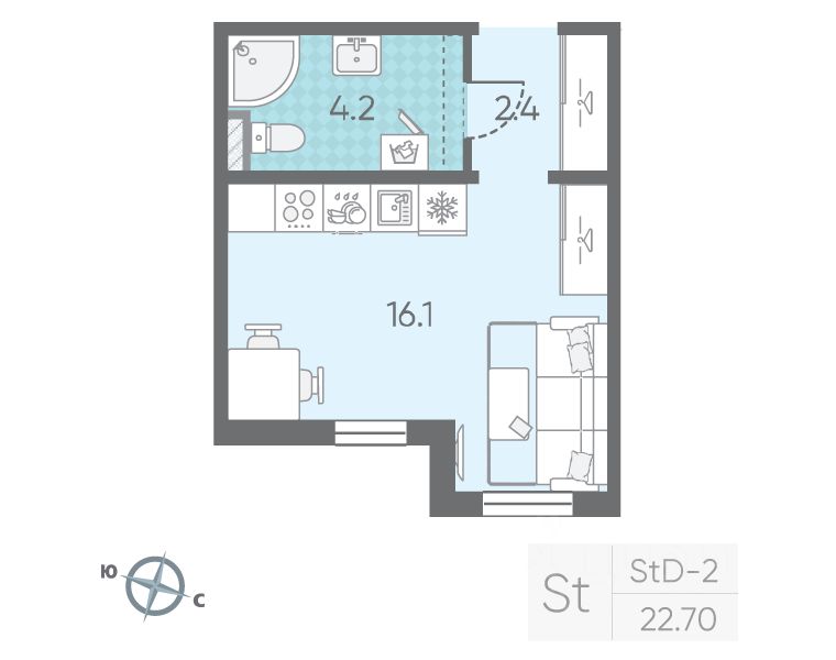Продается студия в ЖК "Цветной город" на 2 этаже. Общая площадь составляет 22.70 кв. м. Квартира с чистовой отделкой Срок сдачи дома: 3 квартал 2026. Жилой комплекс "Цветной город" располагается по адресу Санкт-Петербург, Красногвардейский.
