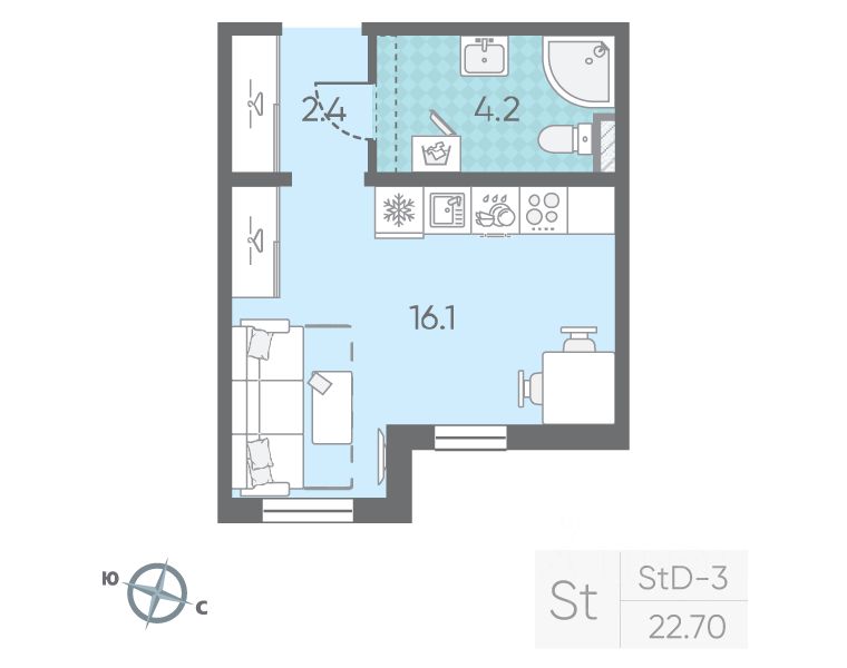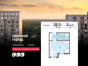 Продается студия в ЖК "Цветной город" на 2 этаже. Общая площадь составляет 22.70 кв. м. Квартира с чистовой отделкой  Срок сдачи дома: 3 квартал 2026. Жилой комплекс "Цветной город" располагается по адресу Санкт-Петербург, Красногвардейский.