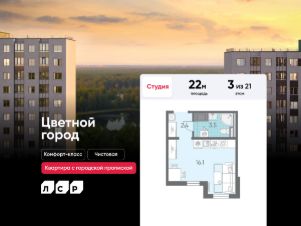 Продается студия в ЖК "Цветной город" на 3 этаже. Общая площадь составляет 22.00 кв. м. Квартира с чистовой отделкой Срок сдачи дома: 3 квартал 2026. Жилой комплекс "Цветной город" располагается по адресу Санкт-Петербург, Красногвардейский. "Цветной город" - современный масштабный эко-проект: жилые кварталы со своей сетью улиц, пешеходными бульварами и велодорожками, площадками для спорта и отдыха. Кварталы располагаются вдоль береговой линии реки Охты. "Цветной город" - это жизнь вблизи природы, но с городской пропиской. К 2026 году на берегах реки Охты будет создан Пейзажный парк с летними экотропами и зимними горками для тюбингов, скейт-парком и летним кинотеатром. В ЖК "Цветной город" запланировано и уже частично реализовано строительство 10 школ, 16 детских садов, 4 поликлиники, больница, ТРК, спортивно-оздоровительные сервисы С центром Петербурга жителей "Цветного города" свяжет Пискарёвский проспект, удобный выезд на КАД позволяет без труда добираться до других районов. Расположение: • 10 минут на авто до КАД; • 15 минут на авто до станций "Гражданский проспект" и "Академическая"; • 20 минут до ж/д станции "Ручьи".; Квартира сдается с готовой отделкой из современных экологичных материалов: на стенах плотные белые обои под покраску, на полу износостойкий матовый ламинат, в санузлах керамическая плитка на стенах и керамогранит на полу. Трубы отопления скрыты в стяжке пола и не мешают мебели. В квартире предусмотрено большое количество двойных розеток и выключателей. В ЖК "Цветной город" предусмотрена система "Умный дом": смартфон с приложением является ключом от всех дверей в ЖК, гостевой доступ оформляется в приложении, видеозвонки от домофона поступают в приложение, показания счетчиков автоматически передаются в учетные базы ЖКХ. Преимущества: • Рядом лесопарк и река Охта • Живописные виды из окон • Безбарьерная среда • Развитая социальная инфраструктура • Система "Умный дом" Успейте приобрести квартиру на выгодных условиях! Чтобы узнать подробности, обращайтесь за консультацией по телефону.