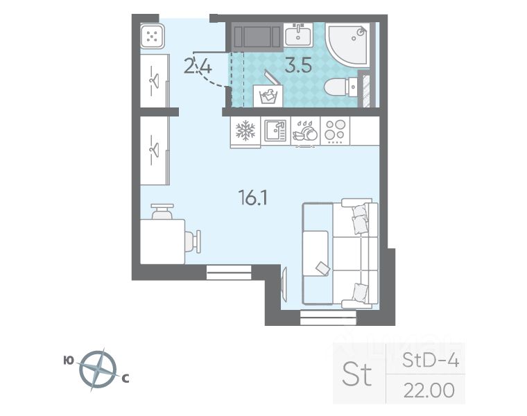 Общая площадь22 м²