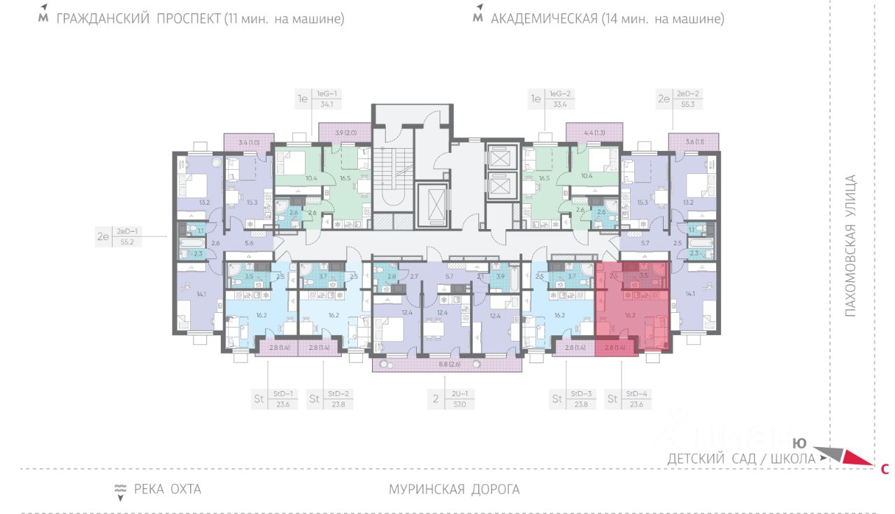 • 15 минут на авто до станций "Гражданский проспект" и "Академическая";