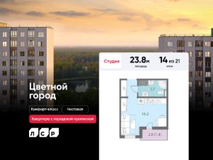 Продается студия в ЖК "Цветной город" на 14 этаже. Общая площадь составляет 23.80 кв. м. Квартира с чистовой отделкой Срок сдачи дома: 3 квартал 2026. Жилой комплекс "Цветной город" располагается по адресу Санкт-Петербург, Красногвардейский.