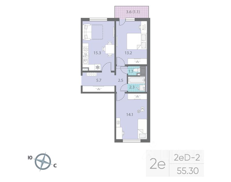 Продается 2-комнатная квартира в ЖК "Цветной город" на 13 этаже. Общая площадь составляет 55.30 кв. м. Квартира с чистовой отделкой Срок сдачи дома: 3 квартал 2026. Жилой комплекс "Цветной город" располагается по адресу Санкт-Петербург, Красногвардейский.