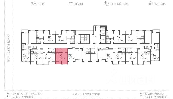 • 15 минут на авто до станций "Гражданский проспект" и "Академическая";