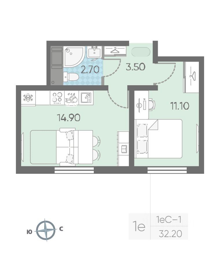 Продается 1-комнатная квартира в ЖК "ЛСР. Ржевский парк" на 12 этаже. Общая площадь составляет 31.20 кв. м. Квартира с чистовой отделкой. Жилой комплекс "ЛСР. Ржевский парк" располагается по адресу Ленинградская область, Всеволожский район, Ковалёво пос..