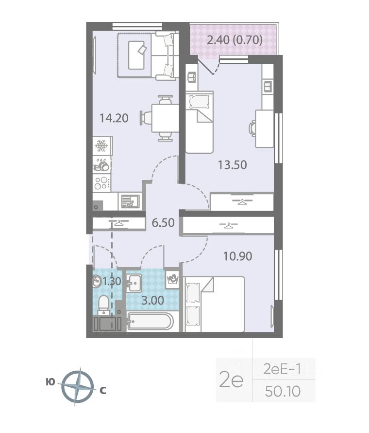 Продается 2-комнатная квартира в ЖК "ЛСР. Ржевский парк" на 13 этаже. Общая площадь составляет 50.10 кв. м. Квартира с чистовой отделкой. Жилой комплекс "ЛСР. Ржевский парк" располагается по адресу Ленинградская область, Всеволожский район, Ковалёво пос..