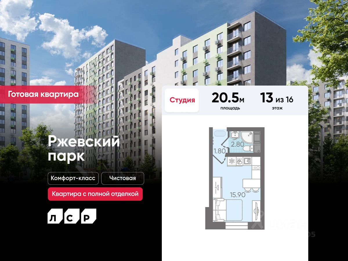 Продается студия в ЖК "ЛСР. Ржевский парк" на 13 этаже. Общая площадь составляет 20.50 кв. м. Квартира с чистовой отделкой. Жилой комплекс "ЛСР. Ржевский парк" располагается по адресу Ленинградская область, Всеволожский район, Ковалёво пос..