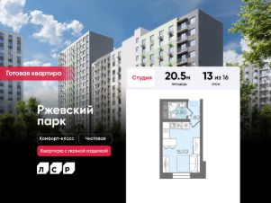 Продается студия в ЖК "ЛСР. Ржевский парк" на 13 этаже. Общая площадь составляет 20.50 кв. м. Квартира с чистовой отделкой. Жилой комплекс "ЛСР. Ржевский парк" располагается по адресу Ленинградская область, Всеволожский район, Ковалёво пос..