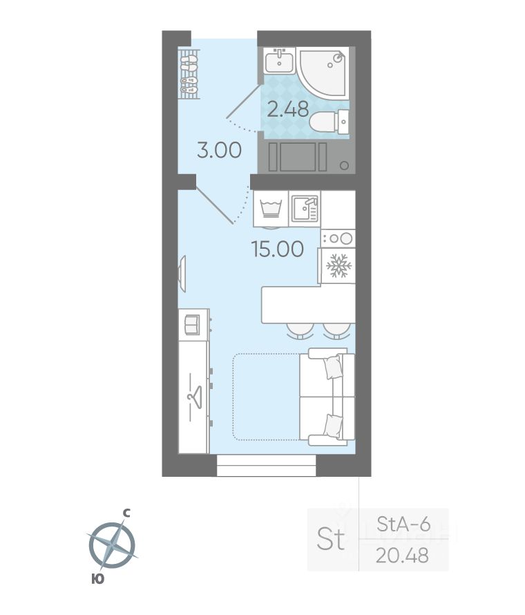 Продаётся студия в ЖК "Ручьи" на 20 этаже. Общая площадь составляет 20.20 кв. м. Квартира с чистовой отделкой. Жилой комплекс "Ручьи" располагается по адресу Санкт-Петербург, Красногвардейский.