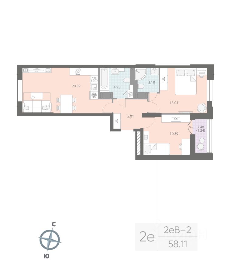 Продаётся 2-комнатная квартира в ЖК "Цивилизация на Неве" на 9 этаже. Общая площадь составляет 58.11 кв. м. Квартира с white box отделкой. Жилой комплекс "Цивилизация на Неве" располагается по адресу Санкт-Петербург, Невский.