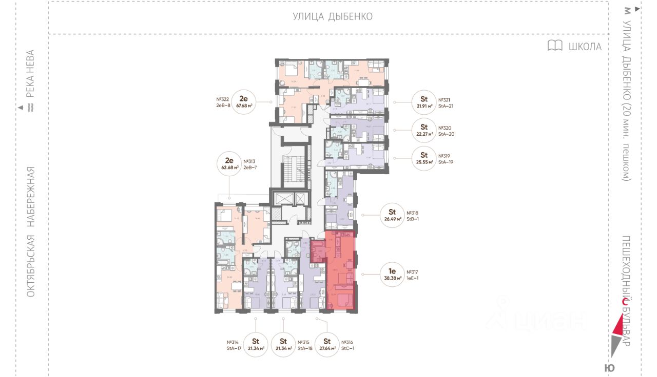 • 5 мин на авто до станции метро "Улица Дыбенко";
