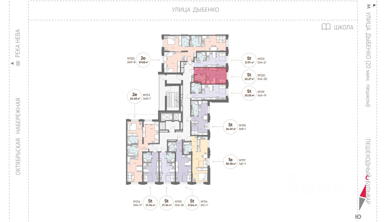 • 5 мин на авто до станции метро "Улица Дыбенко";
