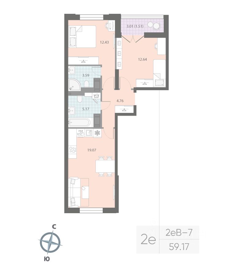 Продаётся 2-комнатная квартира в ЖК "Цивилизация на Неве" на 13 этаже. Общая площадь составляет 59.17 кв. м. Квартира с white box отделкой. Жилой комплекс "Цивилизация на Неве" располагается по адресу Санкт-Петербург, Невский.