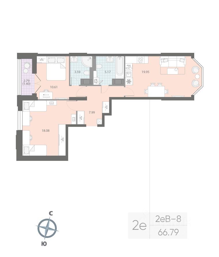 Продаётся 2-комнатная квартира в ЖК "Цивилизация на Неве" на 13 этаже. Общая площадь составляет 66.79 кв. м. Квартира с white box отделкой. Жилой комплекс "Цивилизация на Неве" располагается по адресу Санкт-Петербург, Невский.