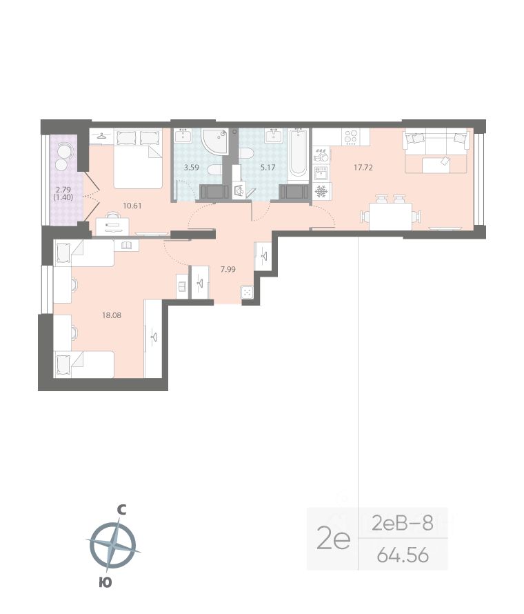 Продаётся 2-комнатная квартира в ЖК "Цивилизация на Неве" на 15 этаже. Общая площадь составляет 64.56 кв. м. Квартира с white box отделкой. Жилой комплекс "Цивилизация на Неве" располагается по адресу Санкт-Петербург, Невский.