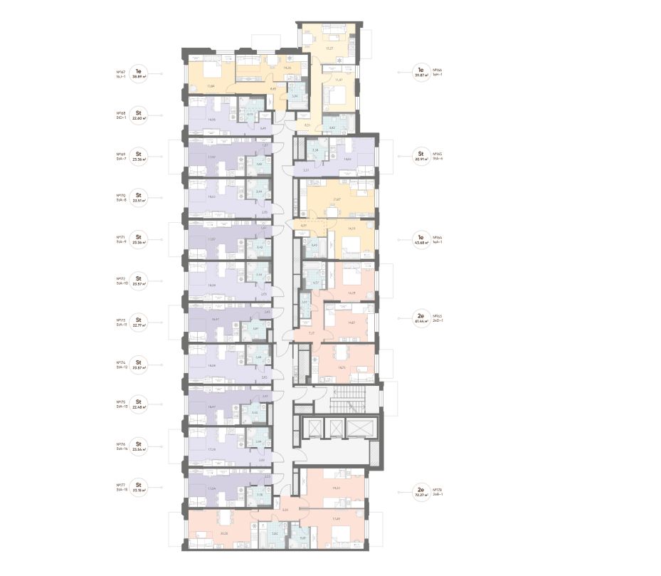 • Инфраструктура шаговой доступности на первых этажах корпусов.